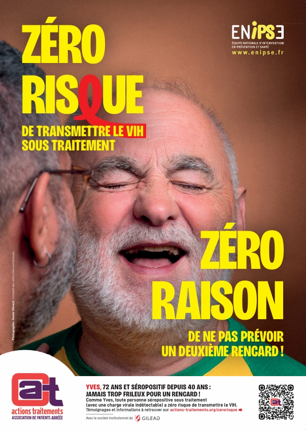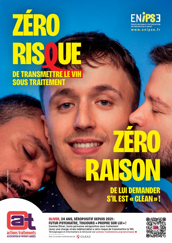 À l’occasion du 1er décembre, Journée mondiale de lutte contre le VIH/sida, ACTIONS TRAITEMENTS et ENIPSE dévoilent leur nouvelle campagne de sensibilisation intitulée « Zéro risque ». Une initiative destinée à rappeler, de façon claire et sans ambiguïté, un message essentiel : une personne vivant avec le VIH sous